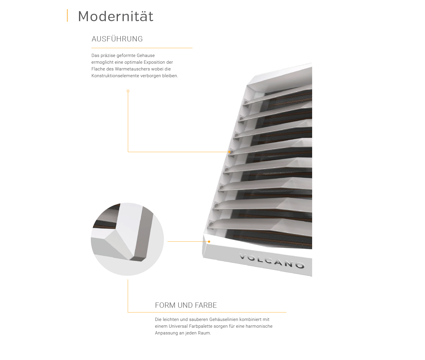 Das präzise geformte Gehäuse ermöglicht eine optimale Exposition der Flache des Wärmetauschers wobei die Konstruktionselemente verborgen bleiben.