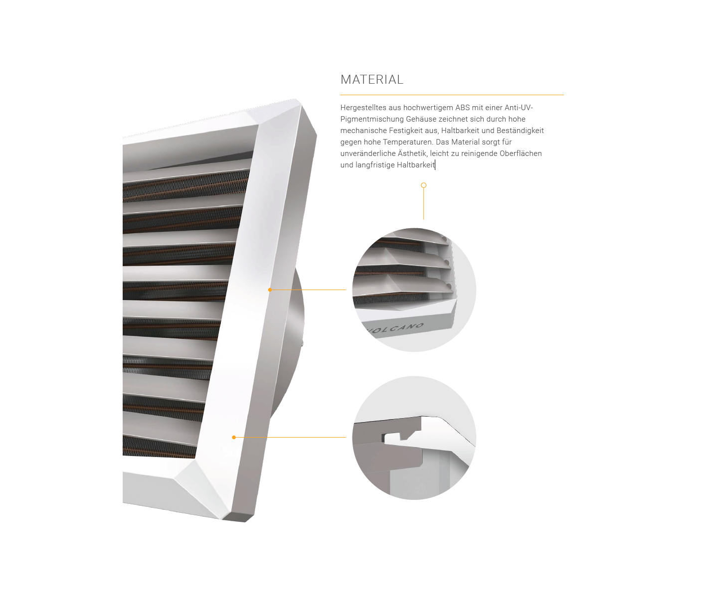 Der Volcano-Lufterhitzer ist ein Gerät der neuen Generation, das innovative technische Lösungen mit modernem Musterdesign kombiniert. Präzises und leichtes Gehäuse ähnelt der schönen Diamantform - ideal in seiner Einfachheit. Der Charakter der Anlage wird durch die Zusammensetzung der ausgewählten Materialien und dynamisch geformten Luftlenklamellen betont.